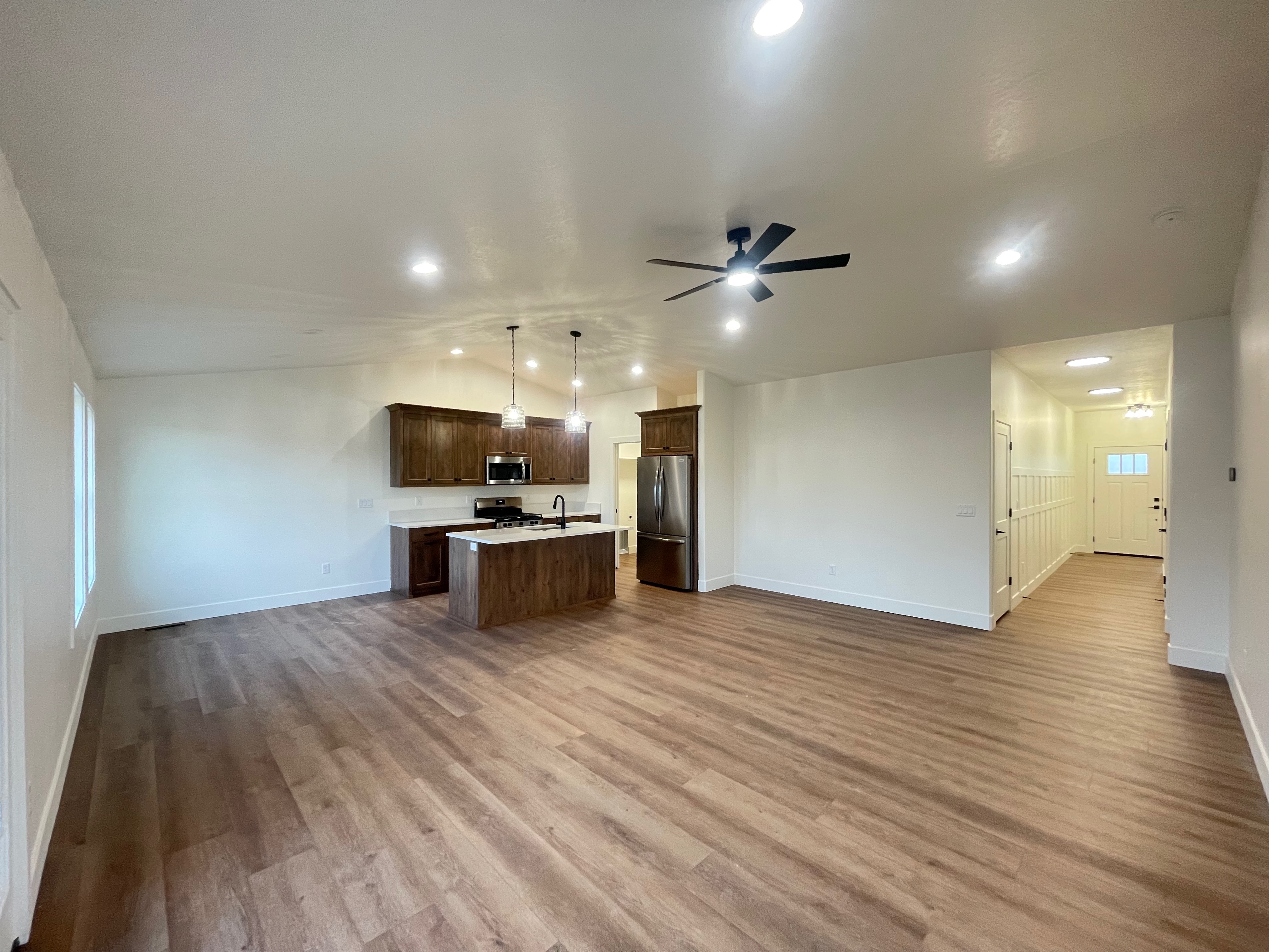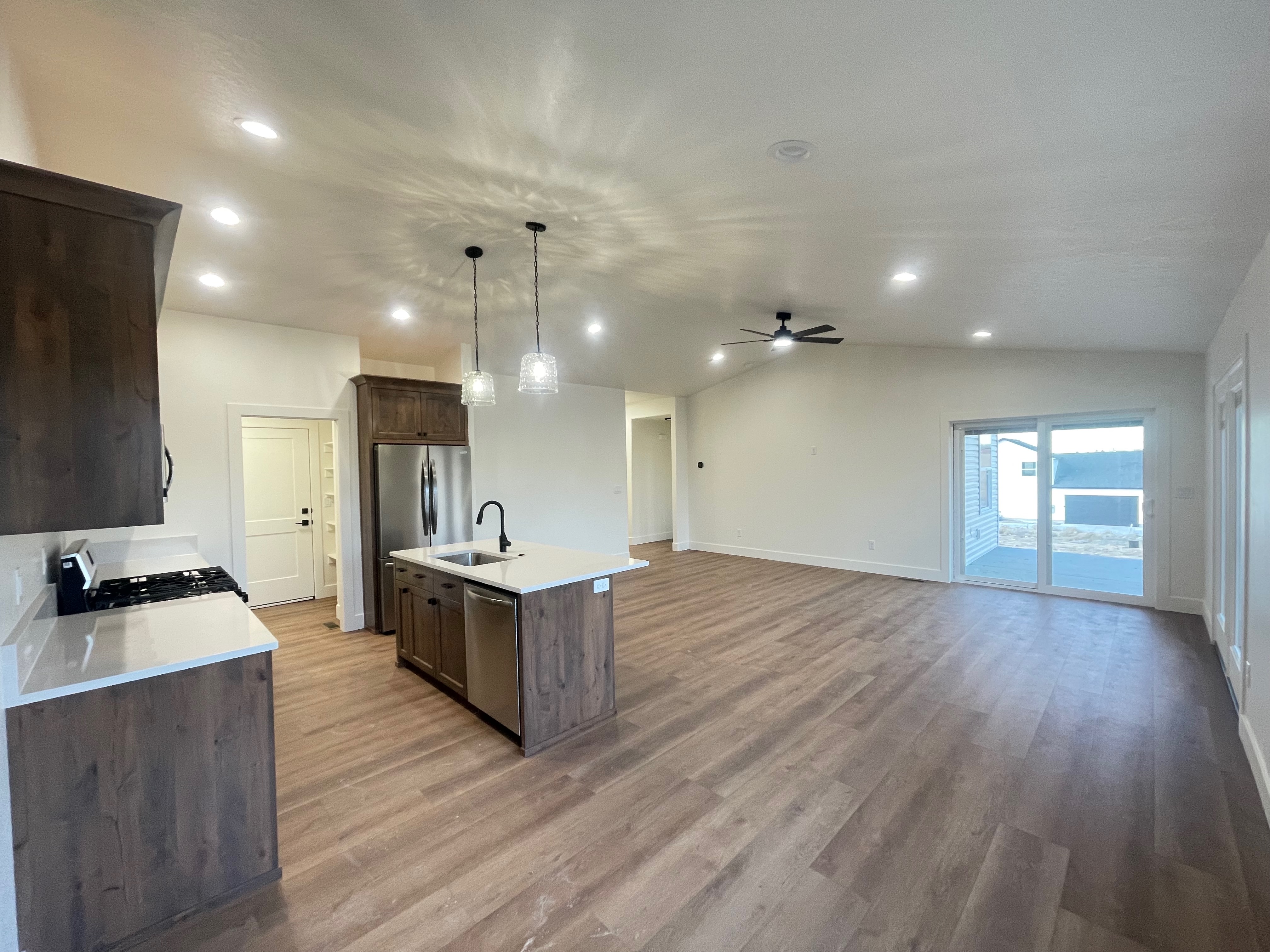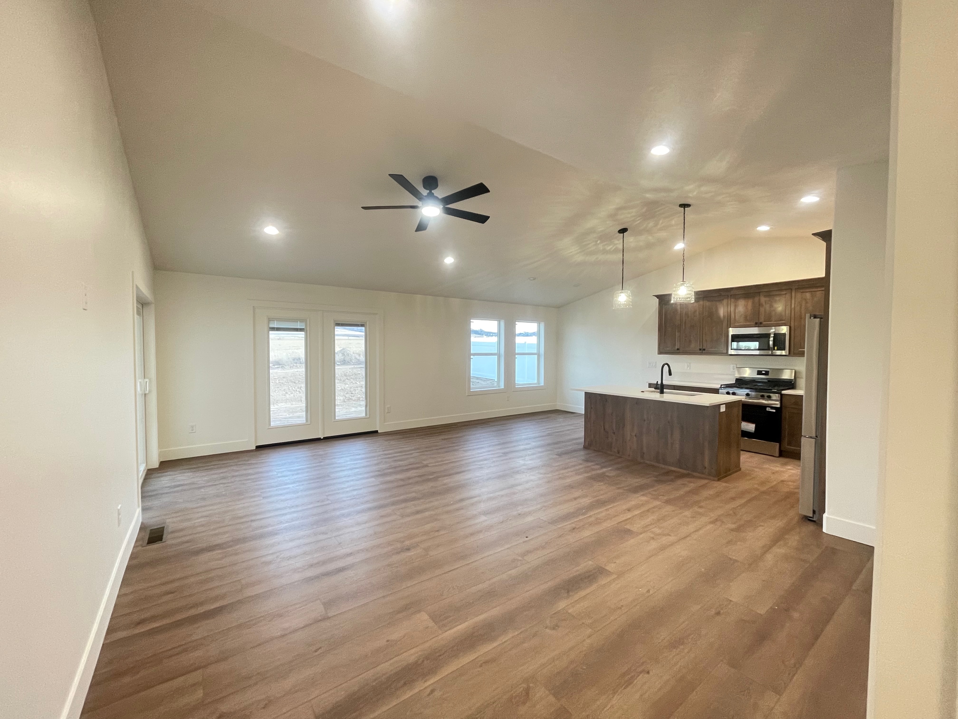 Built with masterful precision this stunning home currently offers 3 bedrooms and 2 bathrooms on the main floor with a full unfinished basement. Highlights include a large covered back patio, spacious closets, quartz countertops, LVP flooring, custom craftsman cabinets. The kitchen, family, and dining room provide an open concept, perfect for entertaining. Two car garage with space for RV parking. Bsmt features 3 more bedrooms and a bathroom that can be finished for an additional cost.
