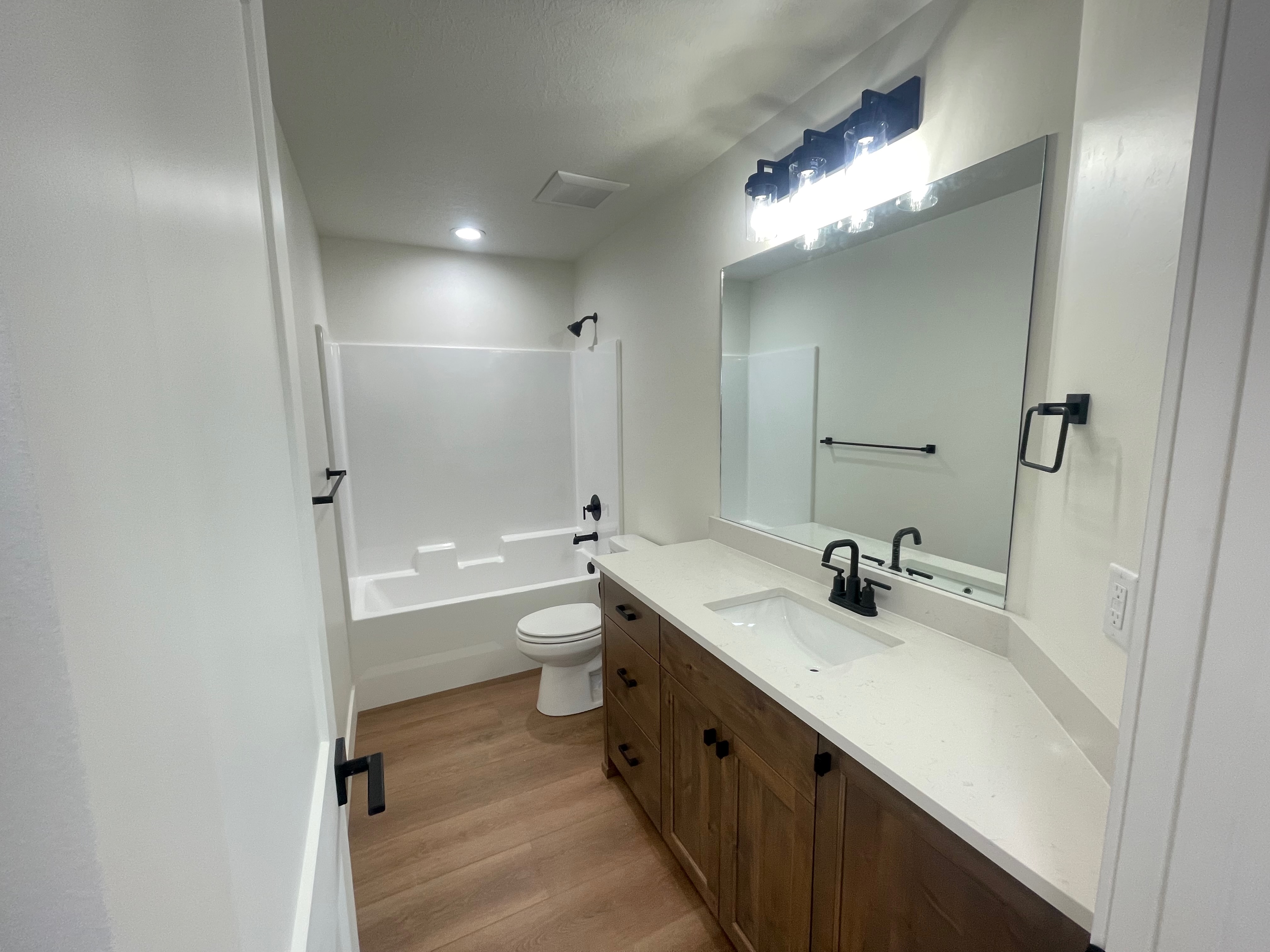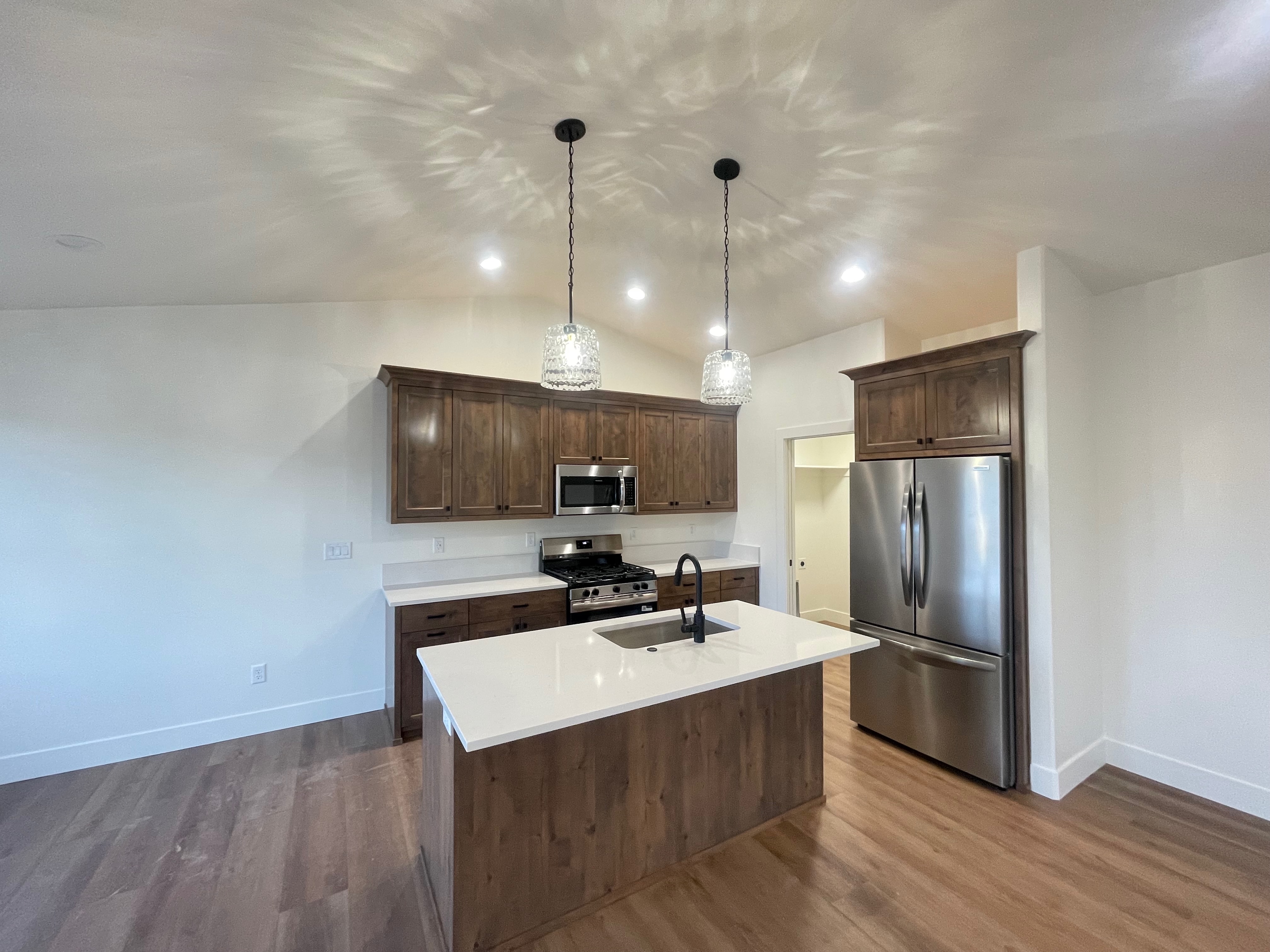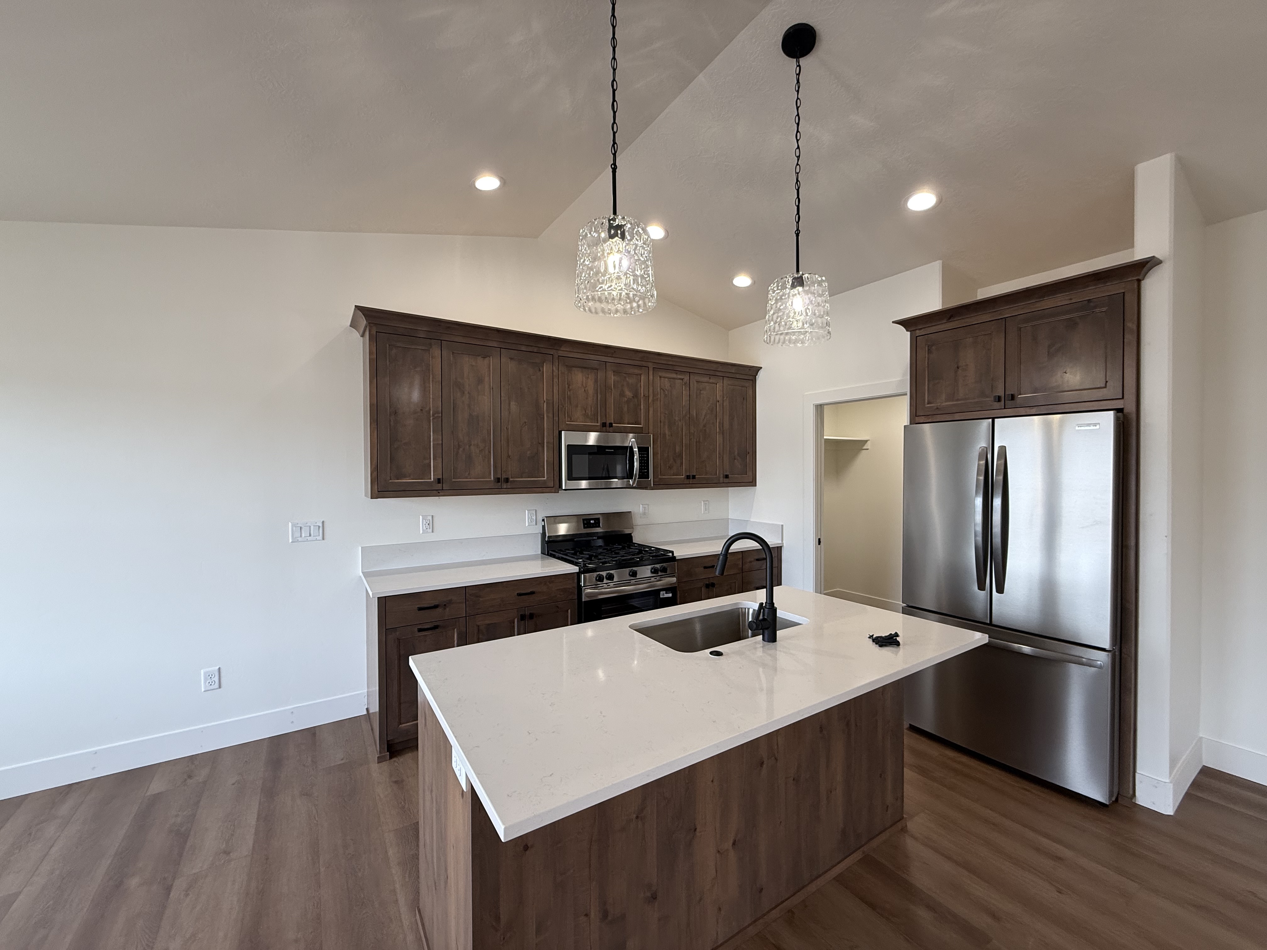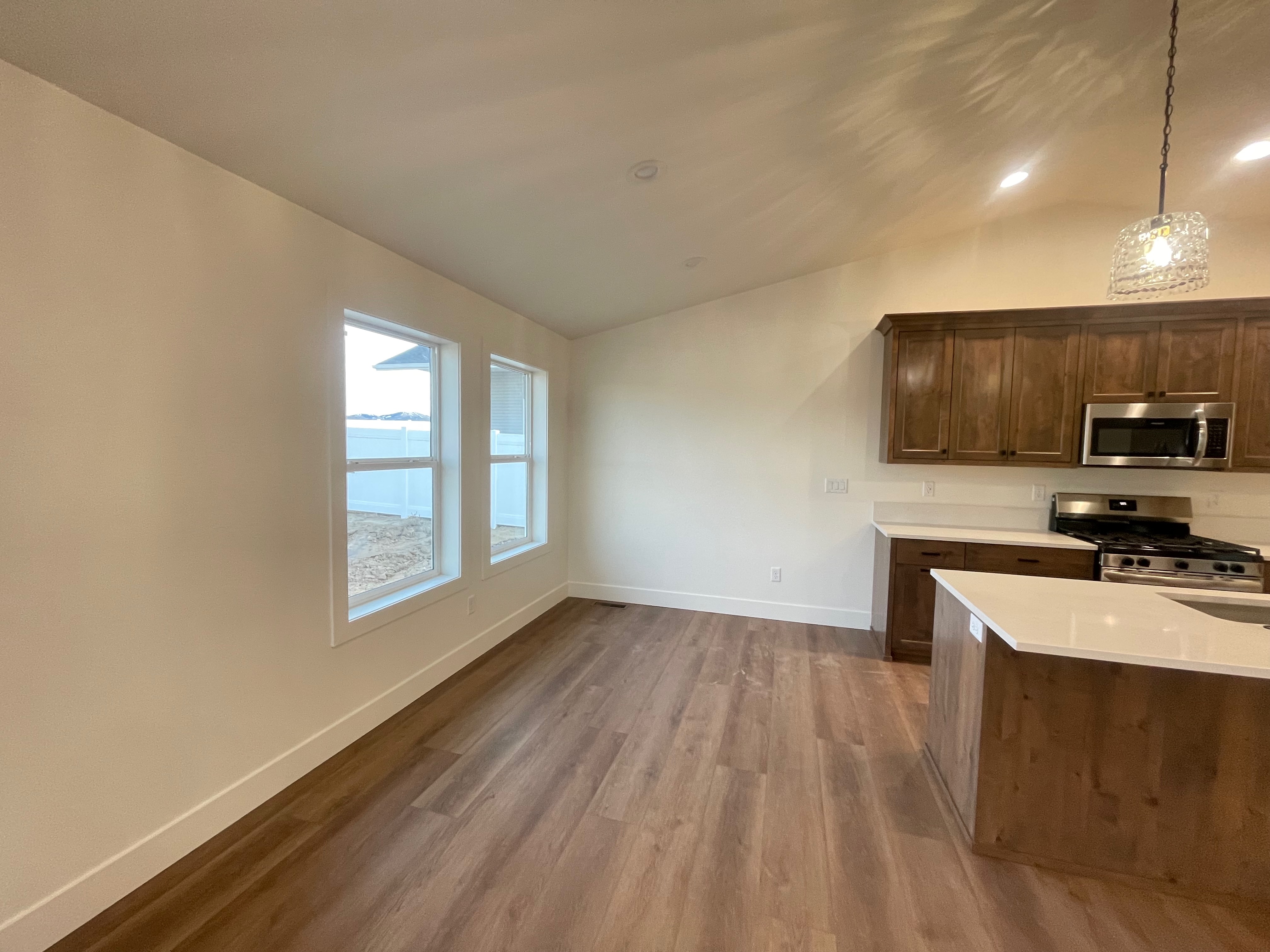 Built with masterful precision this stunning home currently offers 3 bedrooms and 2 bathrooms on the main floor with a full unfinished basement. Highlights include a large covered back patio, spacious closets, quartz countertops, LVP flooring, custom craftsman cabinets. The kitchen, family, and dining room provide an open concept, perfect for entertaining. Two car garage with space for RV parking. Bsmt features 3 more bedrooms and a bathroom that can be finished for an additional cost.